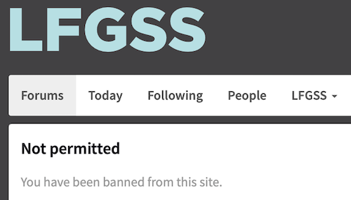 in the style of an AA meeting about getting banned often, simply entitled Banned Anonymous. The first few comments were encouraging. Then it got ugly; not surprising in an environment where members can get tetchy merely by the act of replying to them. I didn't stay anonymous, as someone soon felt free to use my full name (it's no great secret, but still). One guy even snarled at me* for having the temerity to ask permission to reprint his funny post – as the thread was invisible to guests, it seemed only polite. When I then bid him a nice life, he replied that he definitely wouldn't. Well, quite.