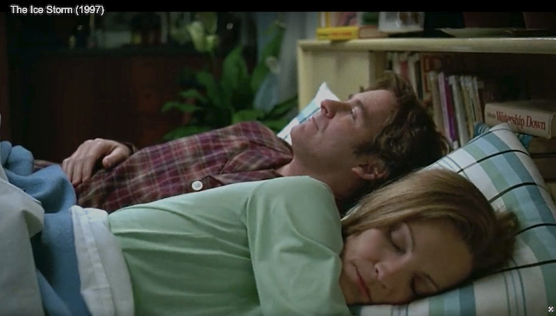 The Ice Storm. (Which is still one of my favourite films. Its cold and wealthy 1970s suburbs, with cold and wealthy parents, were very like some of the places I knew in my early teens.) The poem's final image, of the tree dipping the speaker down to start again, is almost painfully moving. I always have this sense that trees would like to help us if they could.