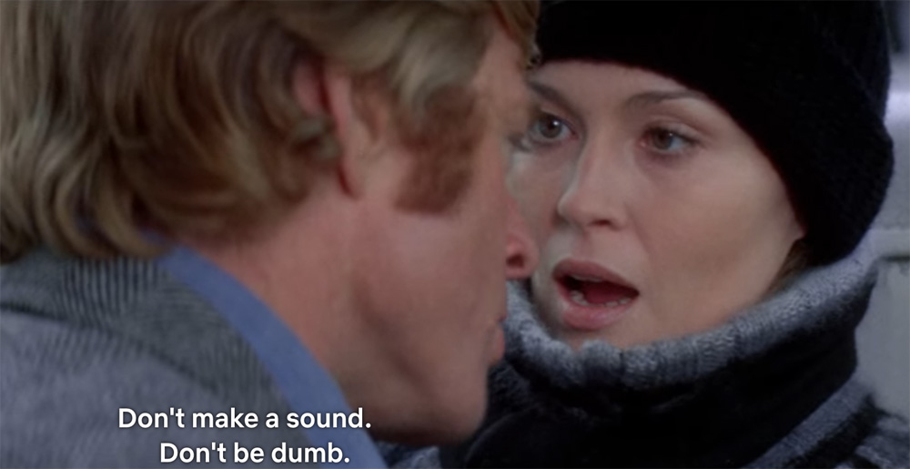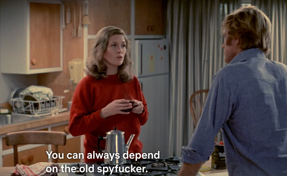 I'm shocked I tell youI can go along with everything else this movie has to offer (the CIA data mining novels; Redford going out for food at just the right time, as he would later do in